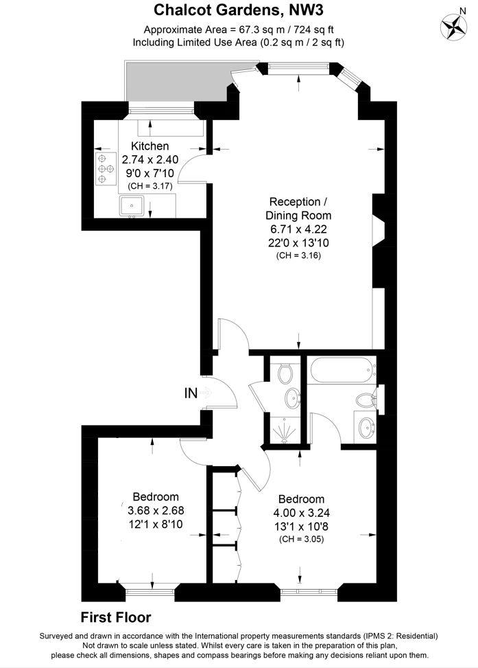 This flat is offered unfurnished and further benefits from 724 sq Ft (67 Sq M) of internal space including a generous 22ft reception room with high ceilings, master bedroom with en-suite and a second double bedroom.