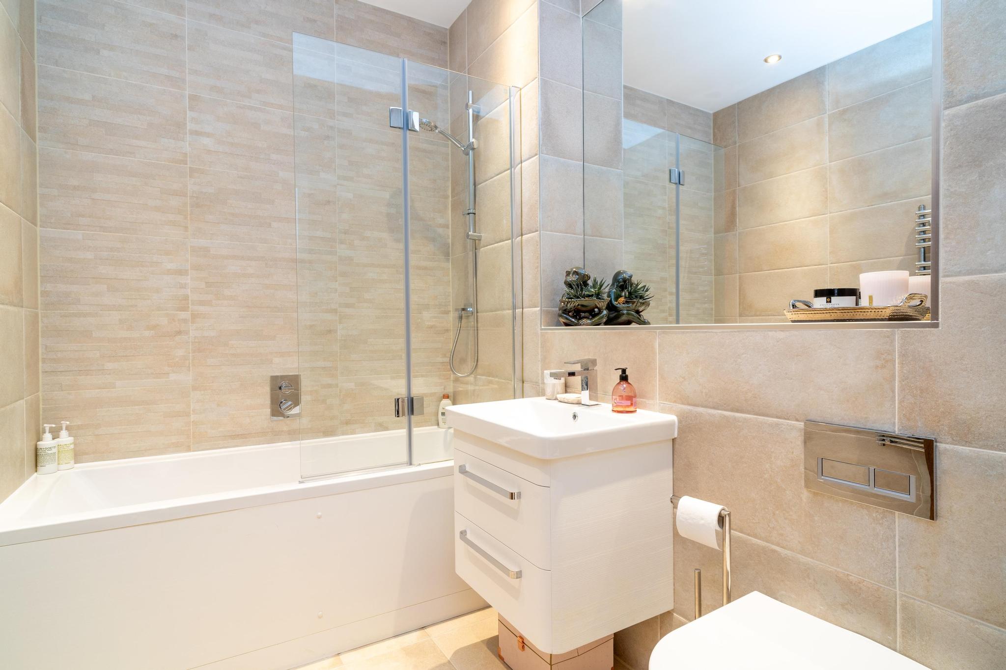 This bright and spacious flat boasts a modern open plan kitchen/reception room area with bespoke storage units and access to a delightful balcony, two generous double bedrooms and two stylish bathrooms. Additional features include access to a large boarded loft storage space as well as an additional storage unit in the underground car park and 24/7 private security for the development.